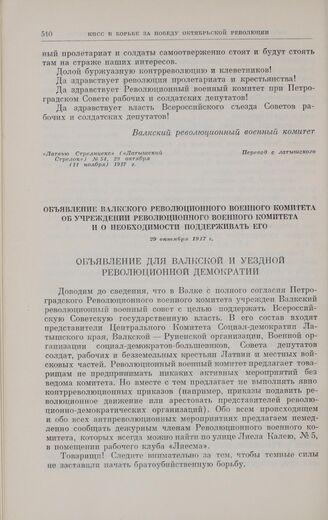 Объявление Валкского Революционного военного комитета об учреждении Революционного военного комитета и о необходимости поддерживать его. 29 октября 1917 г.