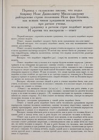 Перевод с галансково письма, что подал боярину Илье Даниловичу Милославскому райтарсково строю полковник Исак фан Буковен. [XVII в.]