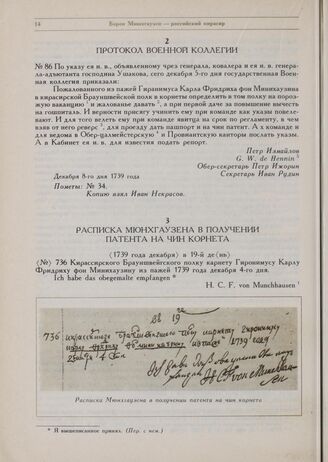 Барон Мюнхгаузен. Документы 1739-1741 гг. Расписка Мюнхгаузена в получении патента на чин корнета. 1739 года декабря в 19-й день // РГВИА. Ф. 2. Оп. 12. Св. 118. Д. 10. Л. 46об. Подлинник. Расписка-автограф.