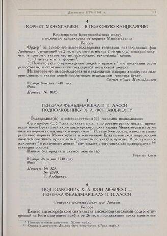 Барон Мюнхгаузен. Документы 1739-1741 гг. Генерал-фельдмаршал П.П. Ласси — подполковнику X.Л. фон Любрехту. Ноября 26-го дня 1740 году. Рига