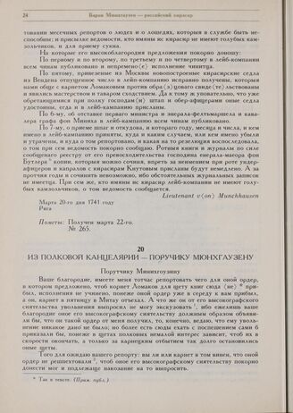 Барон Мюнхгаузен. Документы 1739-1741 гг. Из полковой канцелярии — поручику Мюнхгаузену. Марта 23-го дня 1741 году. Венден