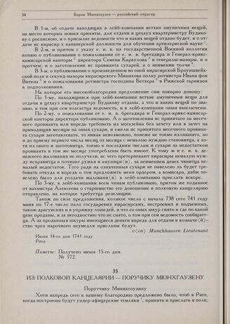 Барон Мюнхгаузен. Документы 1739-1741 гг. Из полковой канцелярии — поручику Мюнхгаузену. Июня 21-го дня 1741 году. Венден