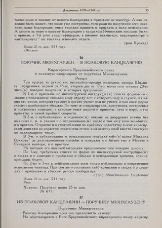 Барон Мюнхгаузен. Документы 1739-1741 гг. Поручик Мюнхгаузен — в полковую канцелярию. Репорт. Июня 21-го дня 1741 году. Рига