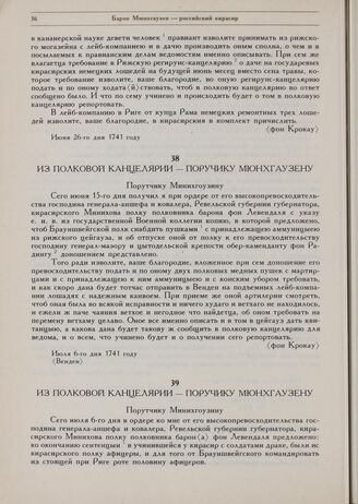 Барон Мюнхгаузен. Документы 1739-1741 гг. Из полковой канцелярии — поручику Мюнхгаузену. Июля 6-го дня 1741 году. Венден