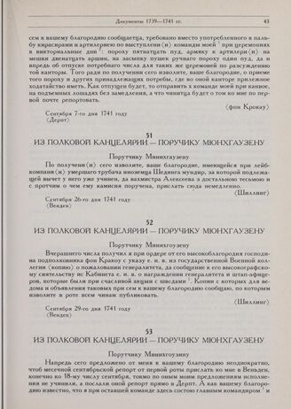 Барон Мюнхгаузен. Документы 1739-1741 гг. Из полковой канцелярии — поручику Мюнхгаузену. Сентября 26-го дня 1741 году. Венден