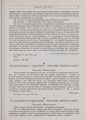 Барон Мюнхгаузен. Документы 1739-1741 гг. Премьер-майор Г. Шиллинг — поручику Мюнхгаузену. Октября 11-го дня 1741 году