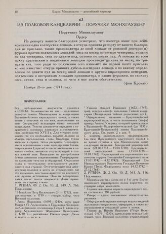 Главная Российский архив. История Отечества в свидетельствах и документах X... Барон Мюнхгаузен. Документы 1739-1741 гг. Из полковой канцелярии — ...