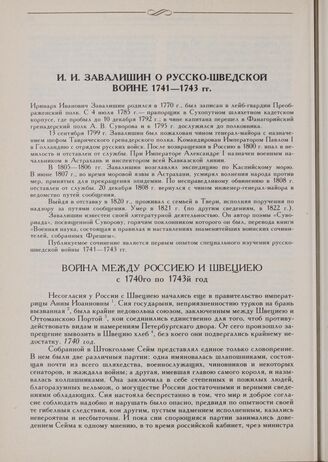 Завалишин И.И. о русско-шведской войне 1741-1743 гг.
