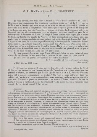 Главная Российский архив. История Отечества в свидетельствах и документах X... Письма М.И. Кутузова к Ж.Б. Траверсе. 26 февраля 1807, Киев