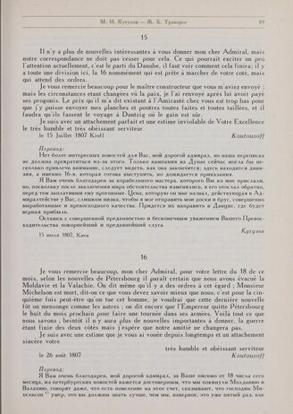 Письма М.И. Кутузова к Ж.Б. Траверсе. 26 августа 1807 г. // РГА ВМФ. Ф. 25. Д. 9. Л. 36.