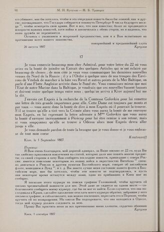 Письма М.И. Кутузова к Ж.Б. Траверсе. Киев, 1 сентября 1807 г.