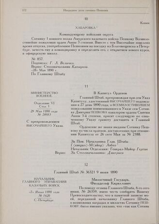 Наградное дело сотника Пешкова. В Капитул Орденов. 29 Мая 1890 г. № 24883 // РГВИА. Ф. 400. Оп. 12. Ед. хр. 17313. Л. 18.