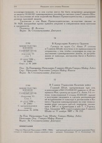 Наградное дело сотника Пешкова. В Главное Управление Казачьих войск. 19 июня 1890 г. № 27403 // РГВИА. Ф. 400. Оп. 12. Ед. хр. 17313. Л. 28