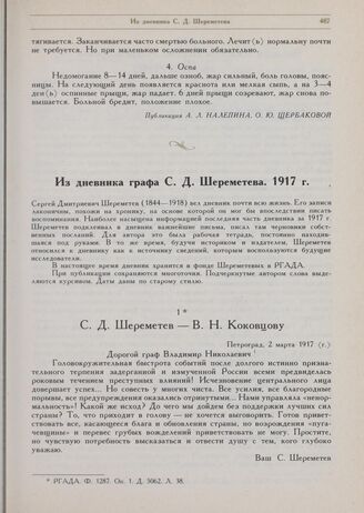 Из дневника графа С.Д. Шереметева. С.Д. Шереметев — В.Н. Коковцову. Петроград, 2 марта 1917 г.