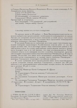 Материалы к биографии военного летчика И.И. Скасырского. Товарищ министра путей сообщения. 1913 г.