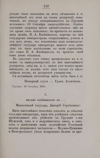 Переписка по делу об убийстве Аракчеевской Настасьи. Письмо Клейнмихеля к... Новгород, 2 Ноября, 1825