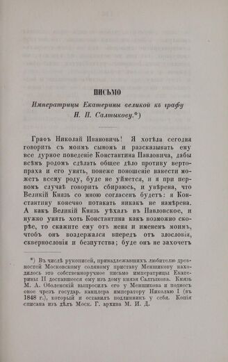 Письмо Императрицы Екатерины великой к графу И.К. Салтыкову. Августа 29, 1796
