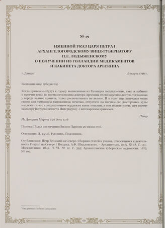 Петр Великий на Севере. Сборник статей и указов, относящихся к деятельности Петра I на Севере / Под ред. А.Ф. Шидловского. - Архангельск, 1909. № 18. С. 151.