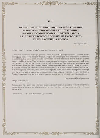 Главная «Бархатная книга» Государственного архива Архангельской области. По... Предписание подполковника лейб-гвардии Преображенского полка И.И. Б...