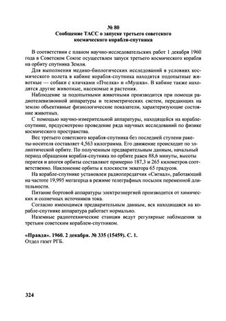 Сообщение ТАСС о запуске третьего советского космического корабля-спутника. 2 декабря 1960 г. // «Правда». 1960. 2 декабря. № 335 (15459). С. 1. Отдел газет РГБ.