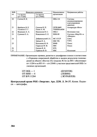 Центральный архив РКК «Энергия». Арх. 2238. Л. 4-21. Подлинник. Подписи — автографы.
