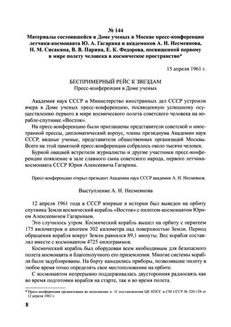 Главная Первый пилотируемый полет Первый пилотируемый полет. Российская космонавтика в архивных докум... Материалы состоявшейся в Доме ученых в Москве пресс-конференции лет...
