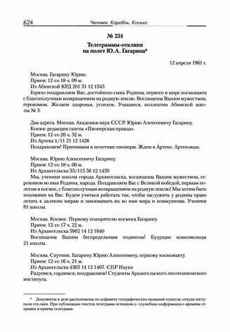 Телеграммы-отклики на полет Ю.А. Гагарина. 12 апреля 1961 г.