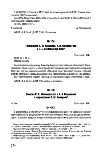 Записка Р.Я. Малиновского и К.А. Вершинина о награждении В.М. Комарова. № 20нс. 12 октября 1964 г. // АП РФ. Ф. 3. Оп. 47. Д. 288. Л. 2. Подлинник.