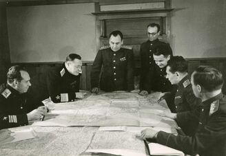Совещание советских военачальников, военных экспертов и советников в период работы Крымской конференции. Крым, февраль 1945 г. // АВП РФ, ф. 6, оп. 2, п. 27, д. 27, № 13.