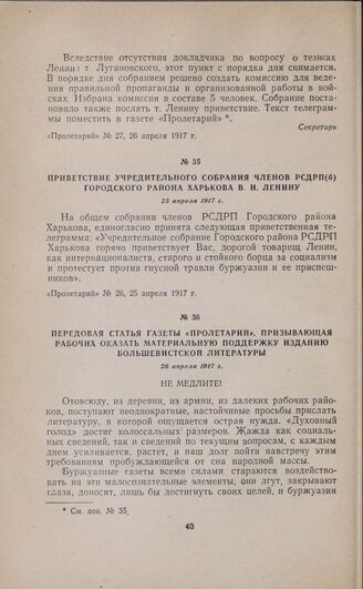 Передовая статья газеты «Пролетарий», призывающая рабочих оказать материальную поддержку изданию большевистской литературы. 26 апреля 1917 г. // «Пролетарий», № 27, 26 апреля 1917 г.