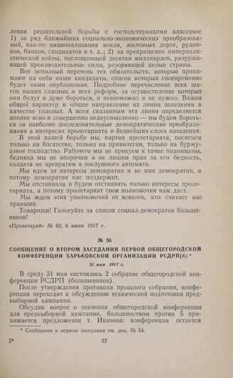 Сообщение о втором заседании Первой общегородской конференции Харьковской организации РСДРП(б). 31 мая 1917 г. // «Пролетарий», № 58, 3 июня 1917 г.