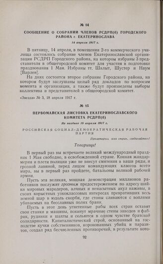 Первомайская листовка Екатеринославского комитета РСДРП(б). Не позднее 18 апреля 1917 г.