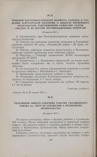 Резолюция общего собрания рабочих гвоздильного завода пос. Амур об отношении к Временному правительству. 26 апреля 1917 г.