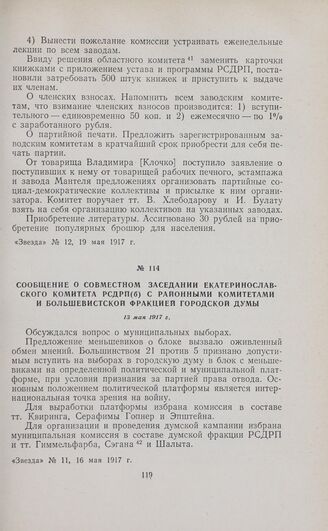 Сообщение о совместном заседании Екатеринославского комитета РСДРП(б) с районными комитетами и большевистской фракцией городской думы. 13 мая 1917 г.