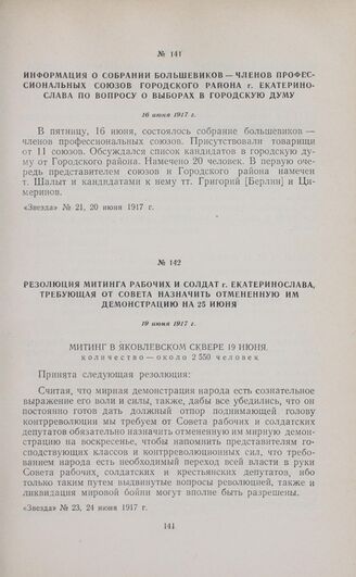 Информация о собрании большевиков — членов профессиональных союзов Городского района г. Екатеринослава по вопросу о выборах в городскую думу. 16 июня 1917 г.