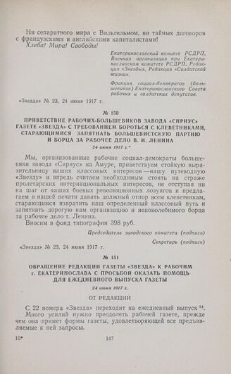Обращение редакции газеты «Звезда» к рабочим г. Екатеринослава с просьбой оказать помощь для ежедневного выпуска газеты. 24 июня 1917 г. // «Звезда», № 23, 24 июня 1917 г.