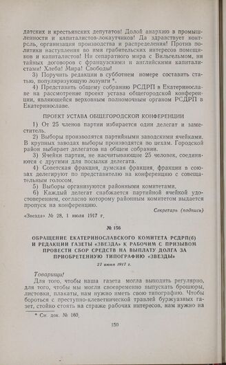 Обращение Екатеринославского комитета РСДРП(б) и редакции газеты «Звезда» к рабочим с призывом провести сбор средств на выплату долга за приобретенную типографию «Звезды». 27 июня 1917 г.