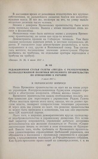Редакционная статья газеты «Звезда» с разоблачением великодержавной политики Временного правительства по отношению к Украине. 2 июля 1917 г.