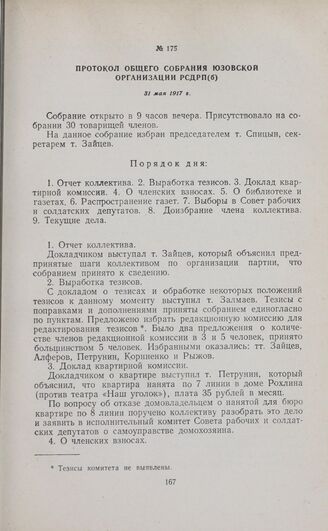 Протокол общего собрания Юзовской организации РСДРП(б). 31 мая 1917 г.