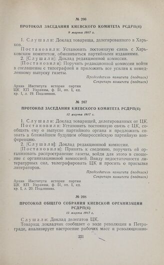 Протокол заседания Киевского комитета РСДРП(б). 12 марта 1917 г. // Архив Института истории партии ЦК КП Украины, ф. 51, оп. 1, ед. хр. 1, л. 20. Подлинник.