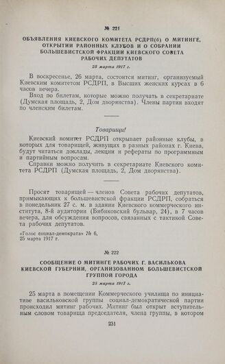 Сообщение о митинге рабочих г. Василькова Киевской губернии, организованном большевистской группой города. 25 марта 1917 г.