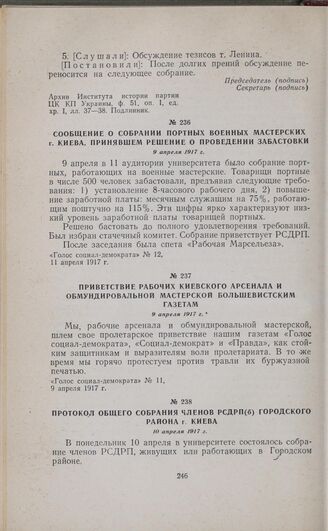 Сообщение о собрании портных военных мастерских г. Киева, принявшем решение о проведении забастовки. 9 апреля 1917 г. // «Голос социал-демократа», № 12, 11 апреля 1917 г.