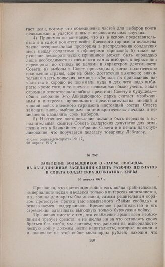 Заявление большевиков о «Займе свободы» на объединенном заседании Совета рабочих депутатов и Совета солдатских депутатов г. Киева. 30 апреля 1917 г. // «Голос социал-демократа», № 19, 3 мая 1917 г.