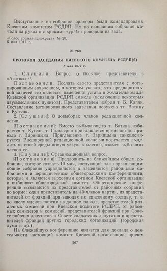Протокол заседания Киевского комитета РСДРП(б). 6 мая 1917 г.
