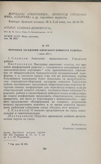Протокол заседания Киевского комитета РСДРП(б). 1 июня 1917 г.