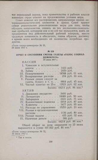 Отчет о состоянии счетов газеты «Голос социал-демократа». 25 июня 1917 г. // «Голос социал-демократа», № 72, 15 июля 1917 г.