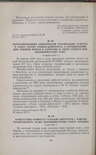Приветствие Комитета сельских депутатов с. Навозы, Черниговского уезда большевистской газете «Правда». 6 мая 1917 г. // «Правда», № 50, 6 мая 1917 г.