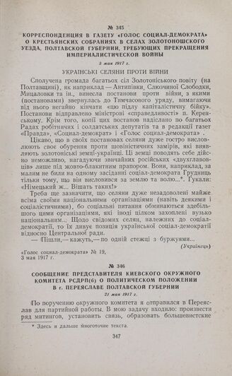 Сообщение представителя Киевского окружного комитета РСДРП(б) о политическом положении в г. Переяславе Полтавской губернии. 21 мая 1917 г.