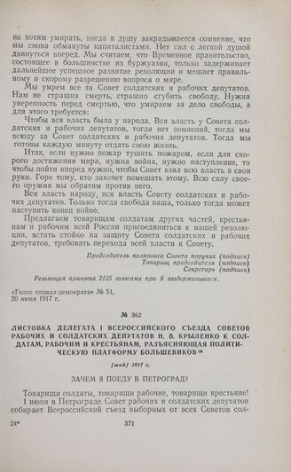 Листовка делегата I Всероссийского съезда Советов рабочих и солдатских депутатов Н.В. Крыленко к солдатам, рабочим и крестьянам, разъясняющая политическую платформу большевиков. [май] 1917 г.