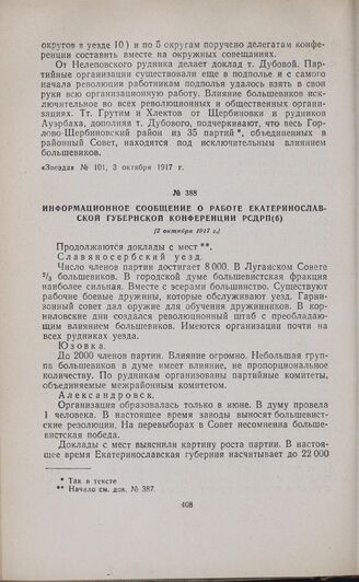 Информационное сообщение о работе Екатеринославской губернской конференции РСДРП(б). [2 октября 1917 г.] // «Звезда», № 103, 5 октября 1917 г.